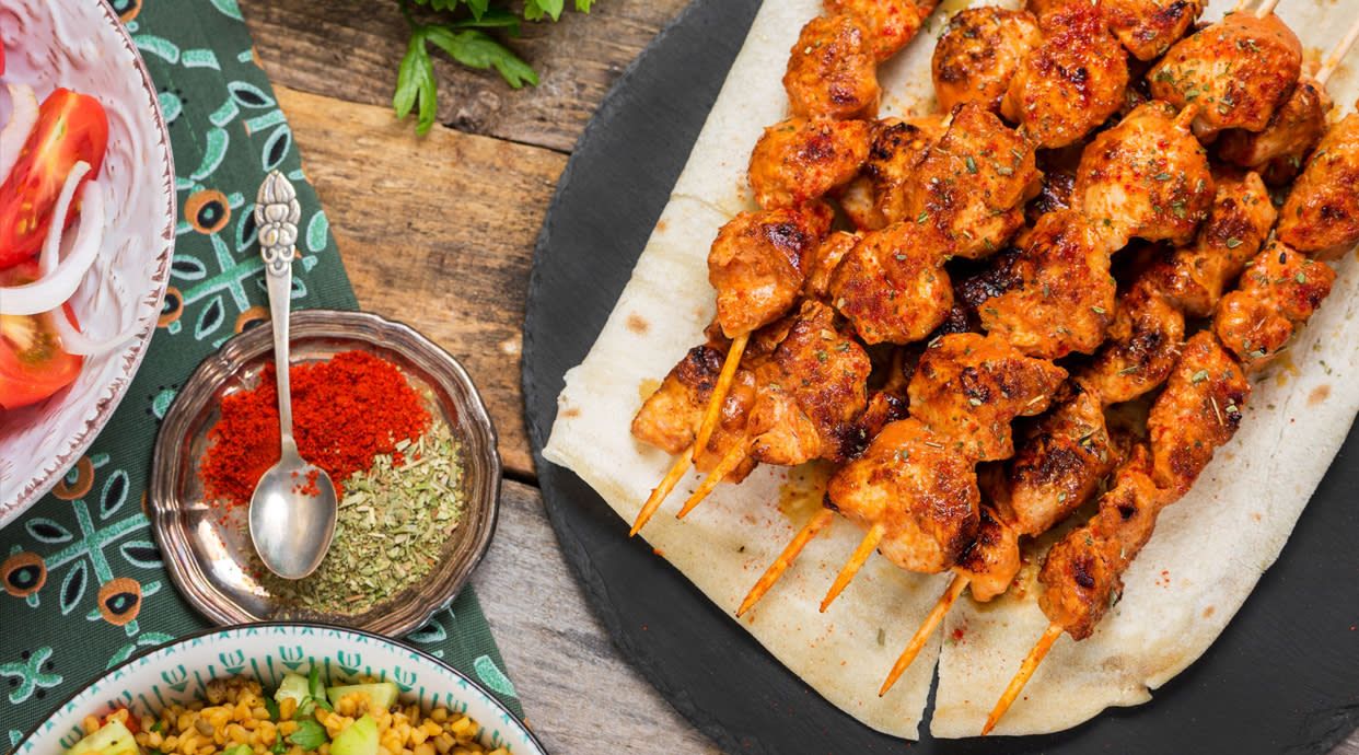 Пилешко месо от дюнер, домати, кис. краставички, чеснов сос, пържени картофи
