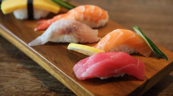 Salmón, atún, pescado blanco y vieiras crudas