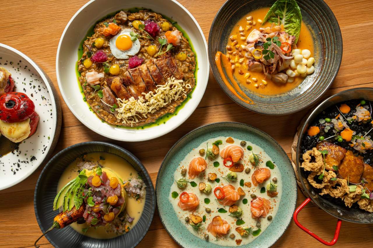 Corvina salvaje, pulpo, leche de tigre clásica, palta, alcaparras, ají limo, maíz chullpe crujiente, choclo, puré de camote y Evoo