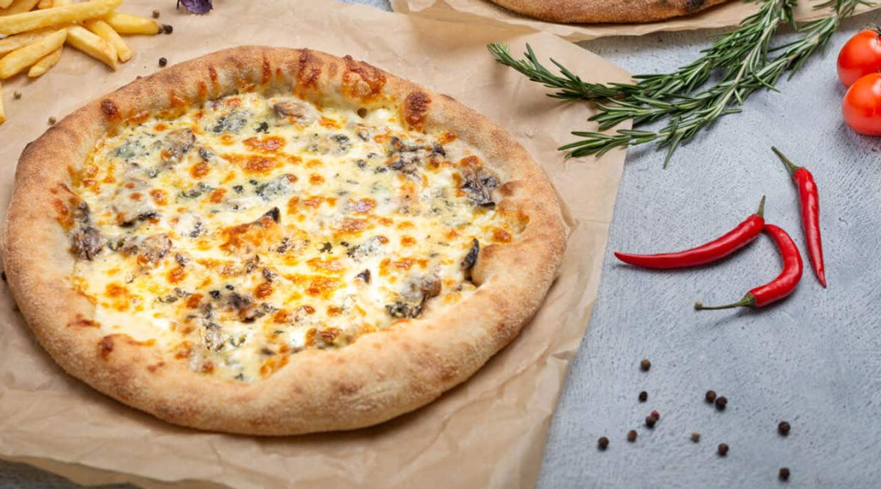 Tomate, queso, mozzarella, roquefort, parmesano, queso de cabra y orégano