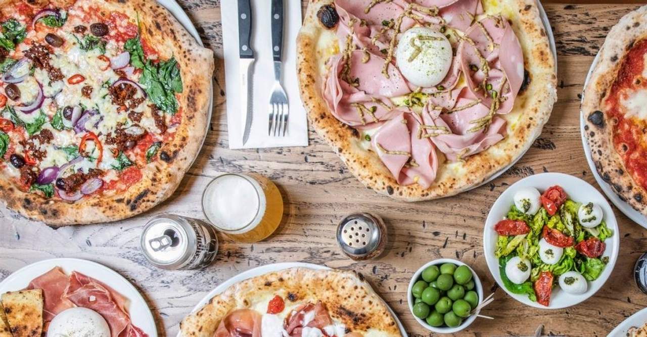 Tomate, mozzarella, jamón York, champiñones y alcachofas, pizza doblada