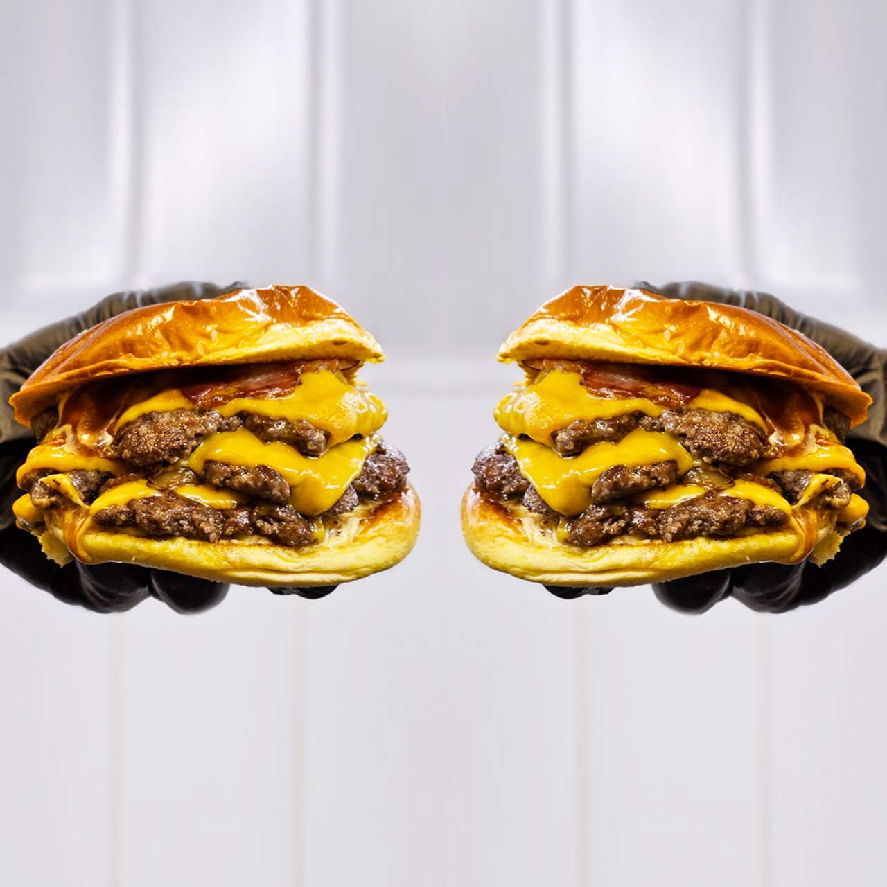 Pan brioche, mayonesa con mostaza de miel con sésamo e higos, 2 burger smash de cortes madurados, queso cheddar, queso edam, cebolla crujiente, pulled de rabo de toro, gotas de aceto trufado y micromezclum