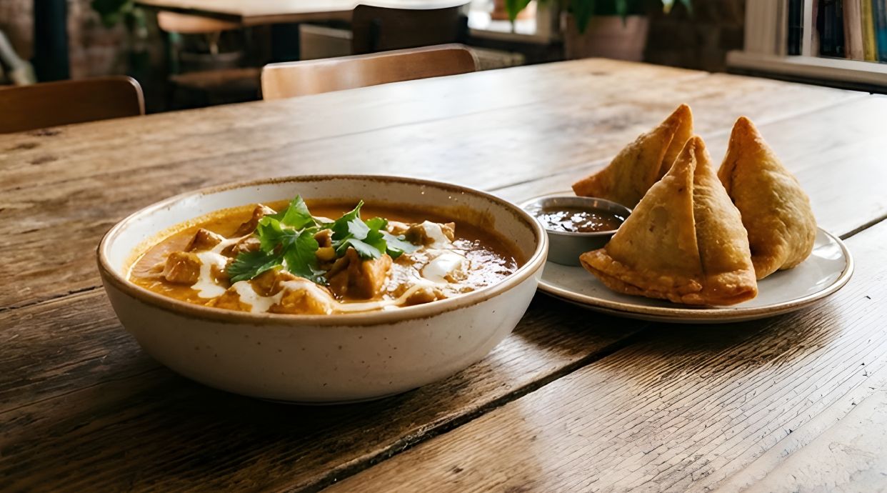 Pechuga de pollo marinada en especias y asada en horno tandoor.