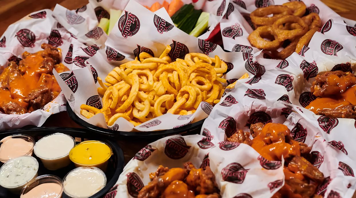 Alitas de pollo deshuesadas y crujientes, servidos con salsa de su elección, zanahorias, apio y dip de su elección.