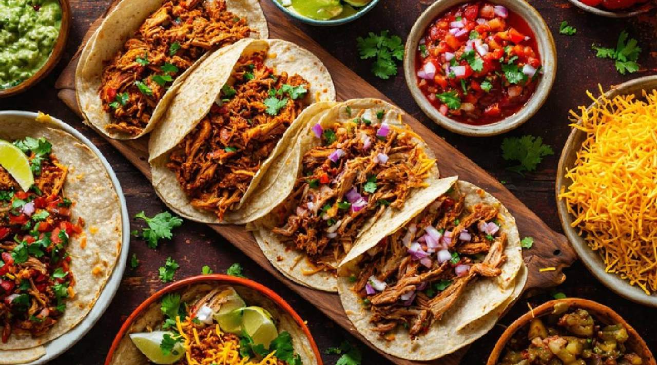 Carne de cerdo asada servido con pico de gallo, nata entera y salsa verde