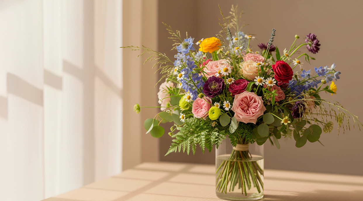 Arreglo floral tamaño M en base de cerámica.