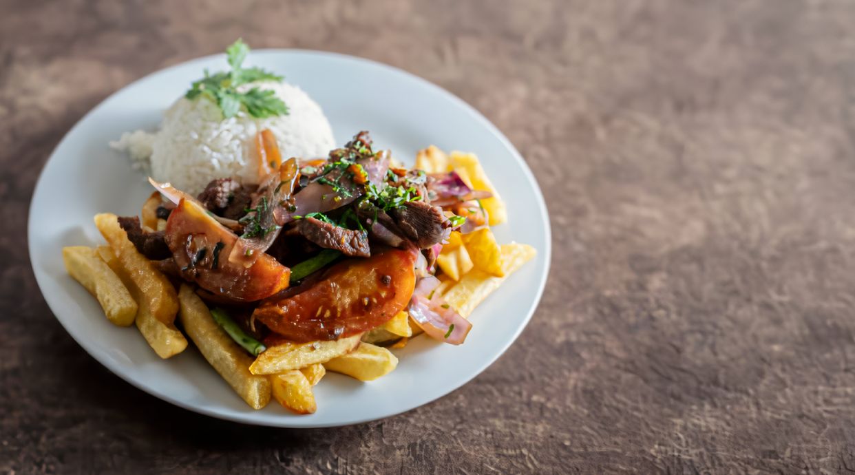 Lomo saltado con un toque especial de huevo y plátano bellaco.