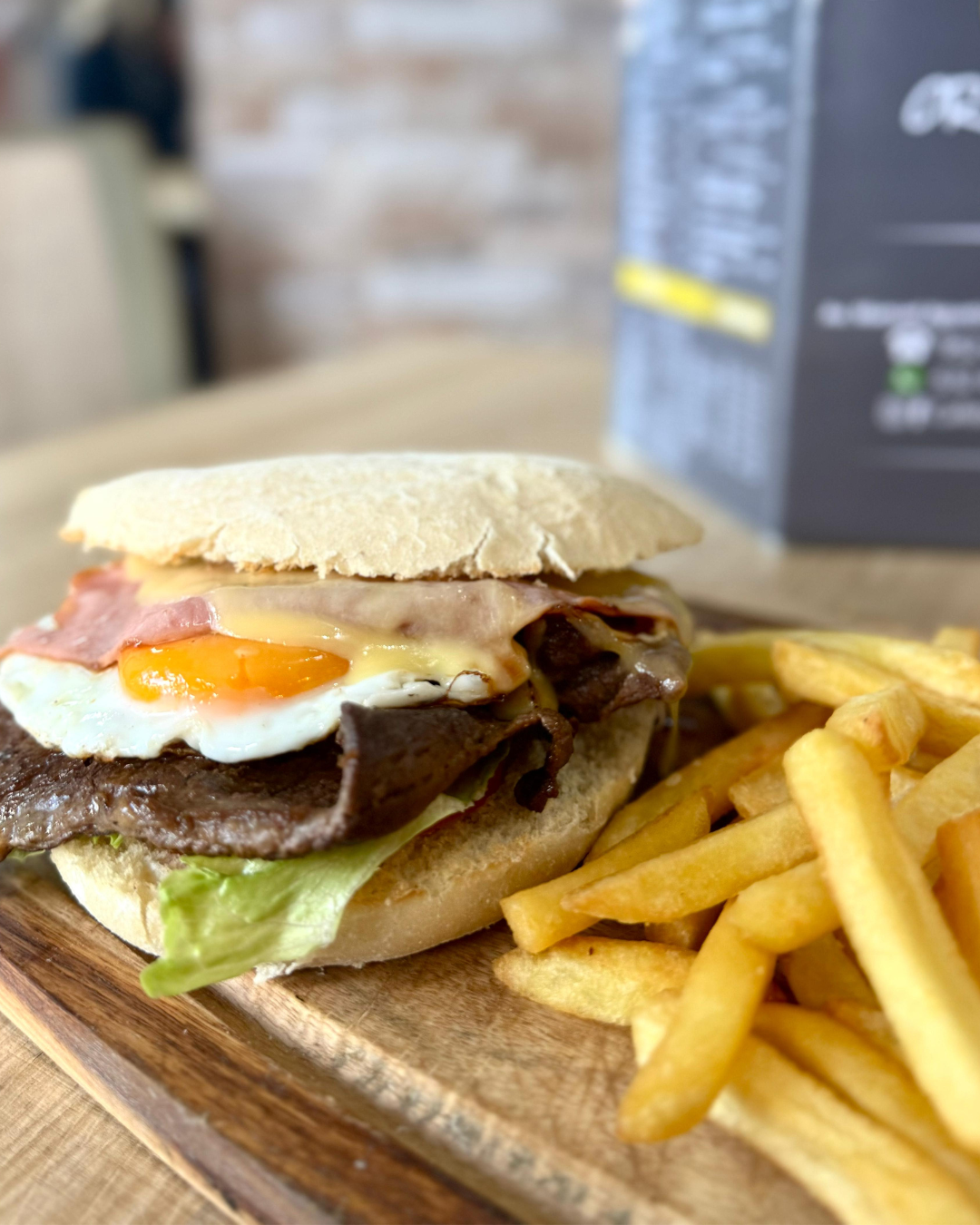 Jugosa hamburguesa acompañada de crujientes patatas