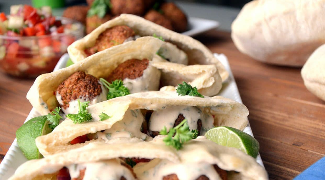 Carne de kebab, queso, cebolla y salsa de yogurt