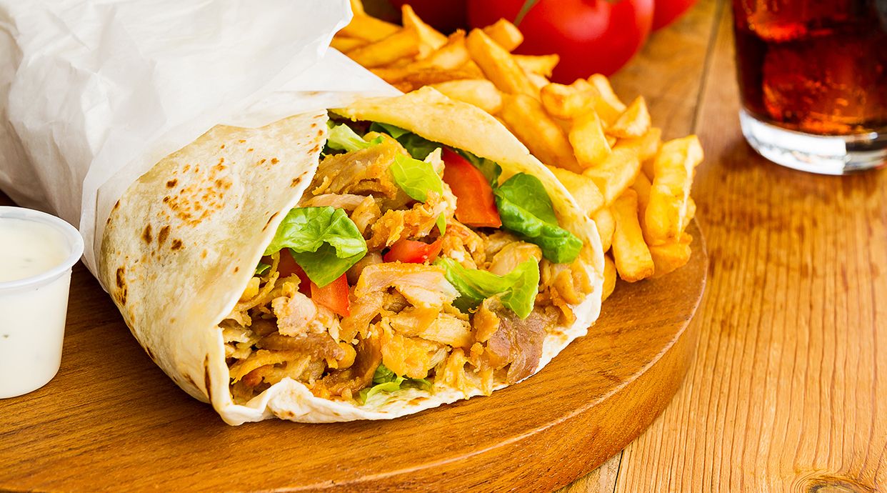 Con carne de shawarma de pollo o ternera y salsa yogur