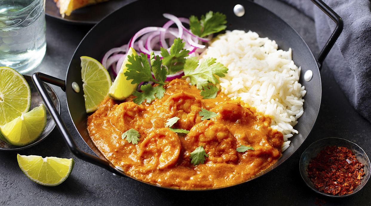Un delicioso curry de gambas rojas delicadamente peladas, con una base de..
