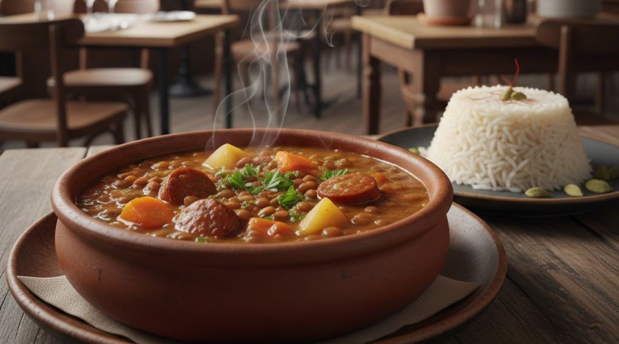Sopa tradicional marroquí rica en legumbres y especias.