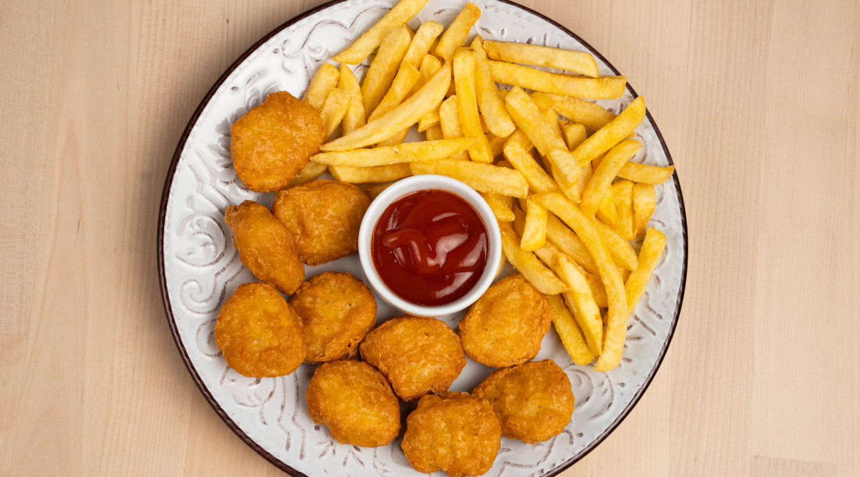 Milanesa de ternera o pollo, salsa BBQ, queso cheddar, bacon, crunch de cebolla. Acompañada de patatas fritas.