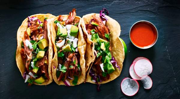 Tortilla de Maíz , cebolla, pimientos, Ternera, Queso.