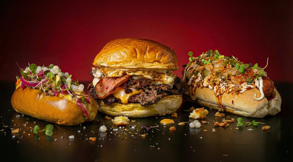 Pan brioche, 2 smash burger (80 g.), bien de queso, beicon, huevo frito, encurtidos, salsa smash, cebolla confitada y kétchup casero.