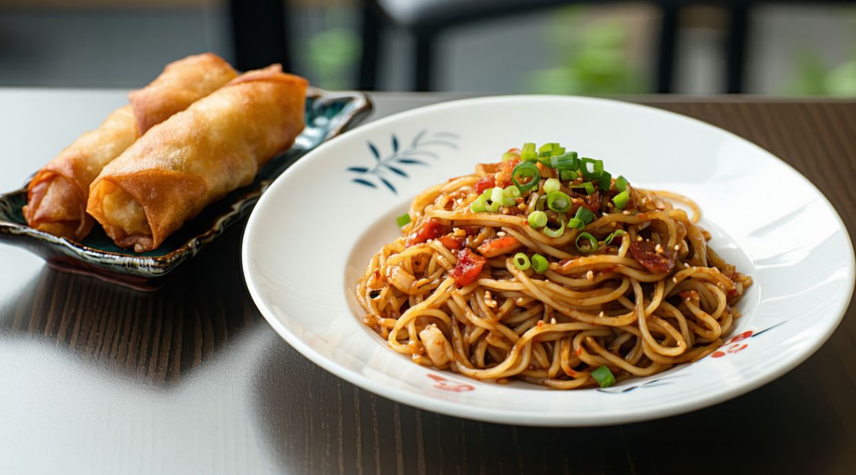 Fideos dorados salteados al estilo tradicional chino
