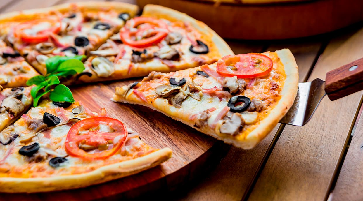 Tomate, mozzarella, alcachofas, champiñones, jamón York y aceitunas negras