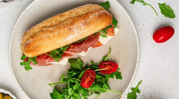 Pan baguetes (25 cm.), rodajas de lomo (3 uds.) y lonchas de queso (3 uds.)