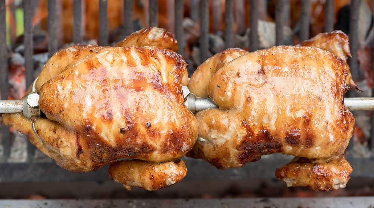 2 Pollos asados, 2 raciones de patatas fritas con plato y bebida grande a elegir