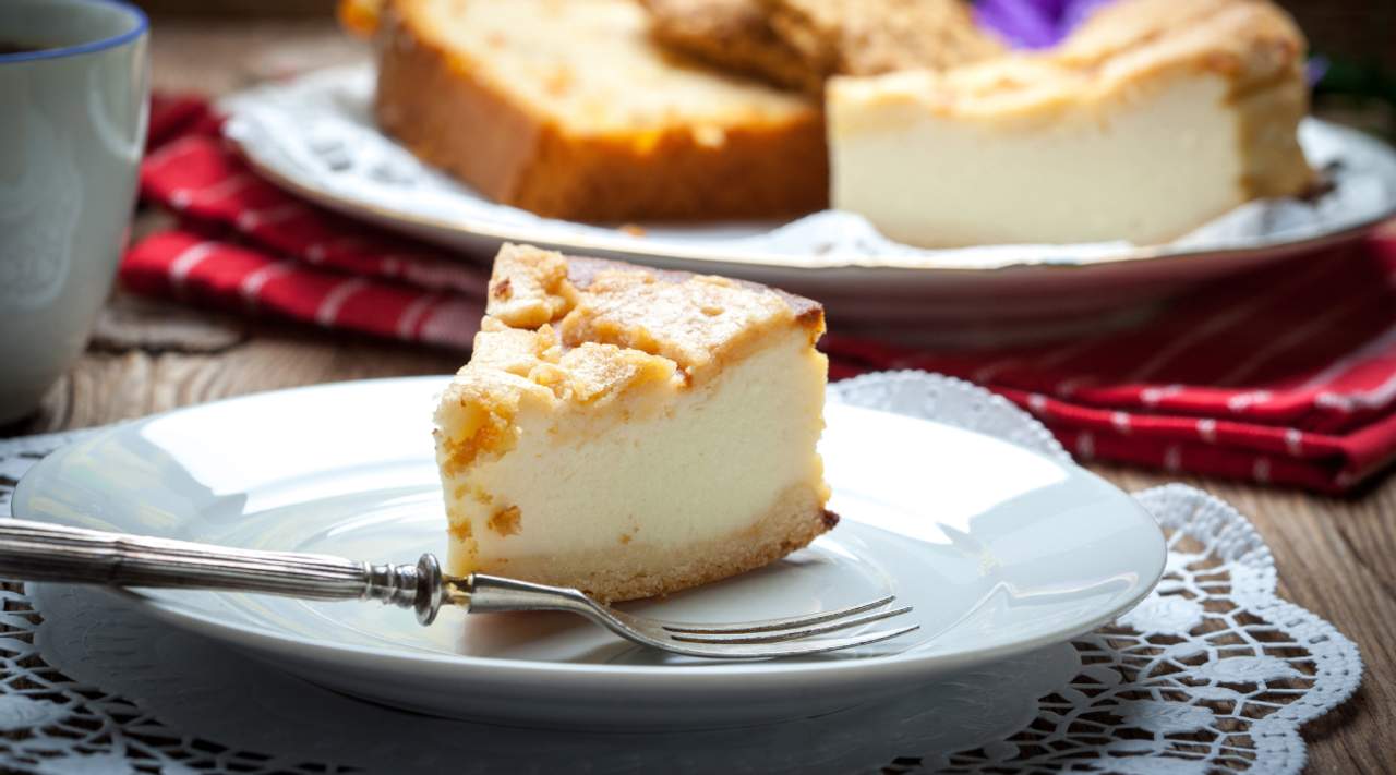 Tarta horneada con base de galleta Digestive, de crema de queso y decorada con dulce de leche