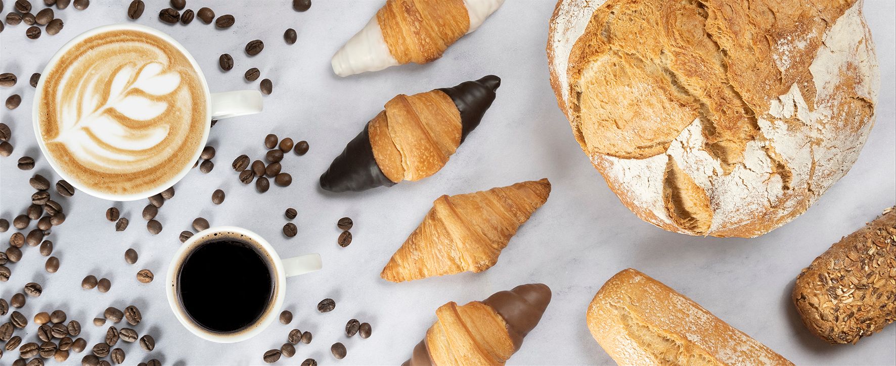 Comparte nuestro desayuno para dos. Elige entre dos bocadillos de baguette, joanet simple o mini bombón y llévatelos con dos cafés