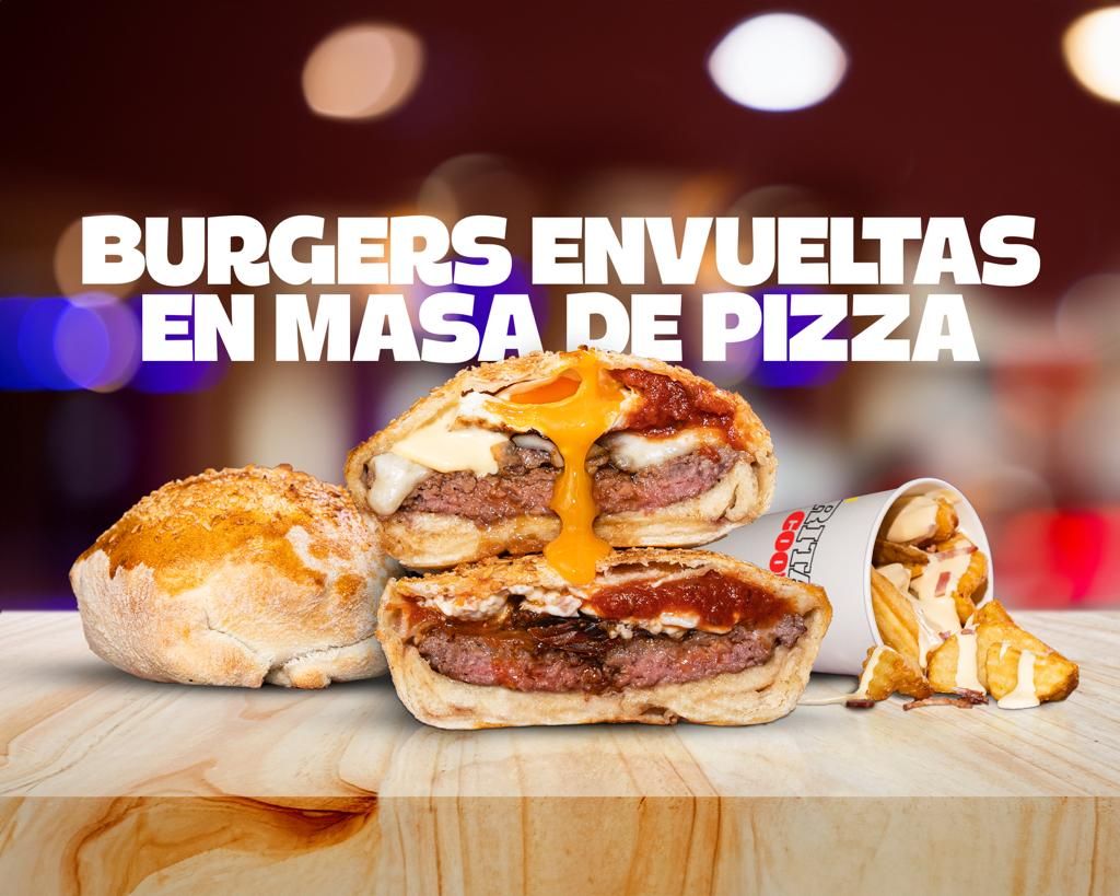 Burgers envueltas en masa de pizza. Haz Click y no te quedes sin la tuya!