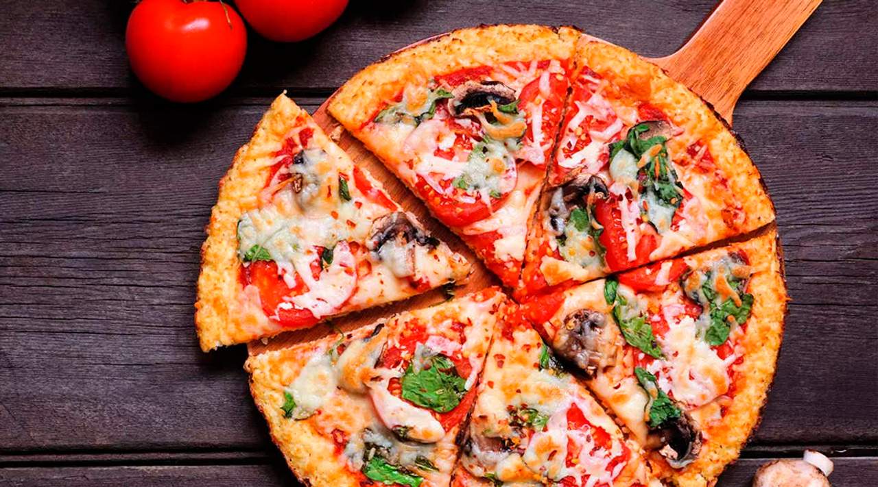 Tomate, mozzarella, prosciutto, champiñones, alcachofa, albahaca y aceite de oliva