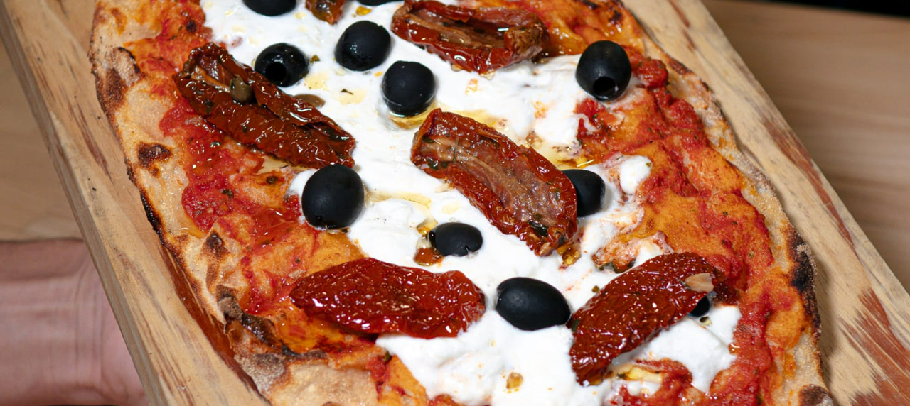 Pinsa Acciughe E Olive Nere (20 Cm. A 30 Cm. Aprox.)