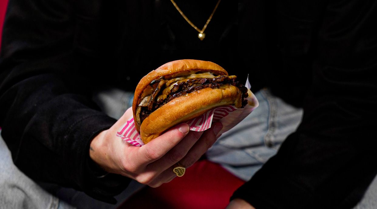 Doble Smash Burger (180 g) de vaca madurada, doble cheddar, guanciale, yema de huevo, salsa de pecorino i pa de brioche.