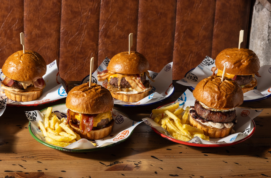 Pan Artesano Pastelería Tolosana, Burger de Chuletón Madurado Dry Aged 45 días, Crema Camembert, Cebolla de Fuentes Caramelizada la brasa, Panzzeta Curada de Teruel, Queso Americano y nuestra Salsa Panzzer