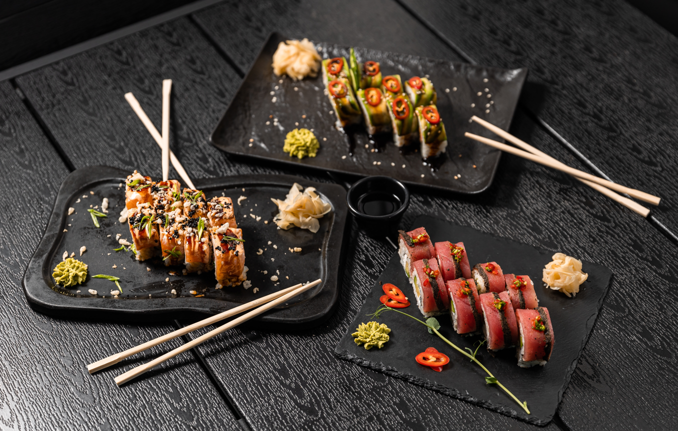 Salmone, cetriolo, tobiko, salsa ponzu
