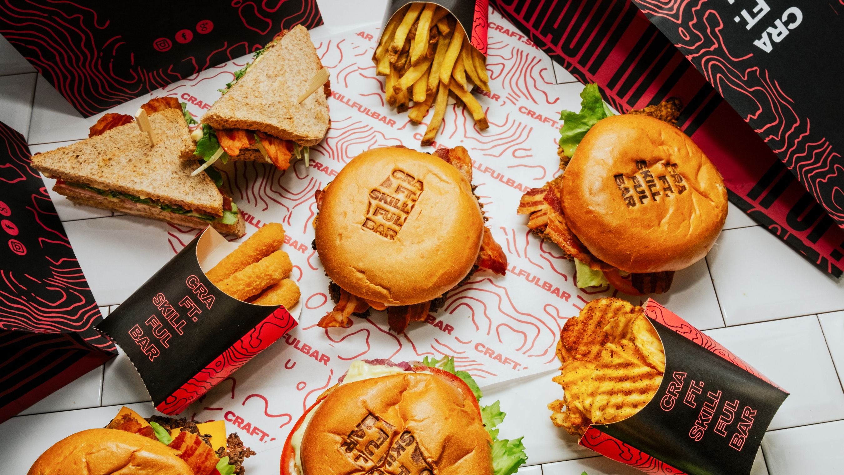 Mr. Dobelina potato bun, Doppio smash burger, Bacon, Cheddar, Salsa Smoky Craft. Allergeni: Glutine, Uova, Soia, Latte, Frutta a guscio, Sedano, Senape, Semi di Sesamo