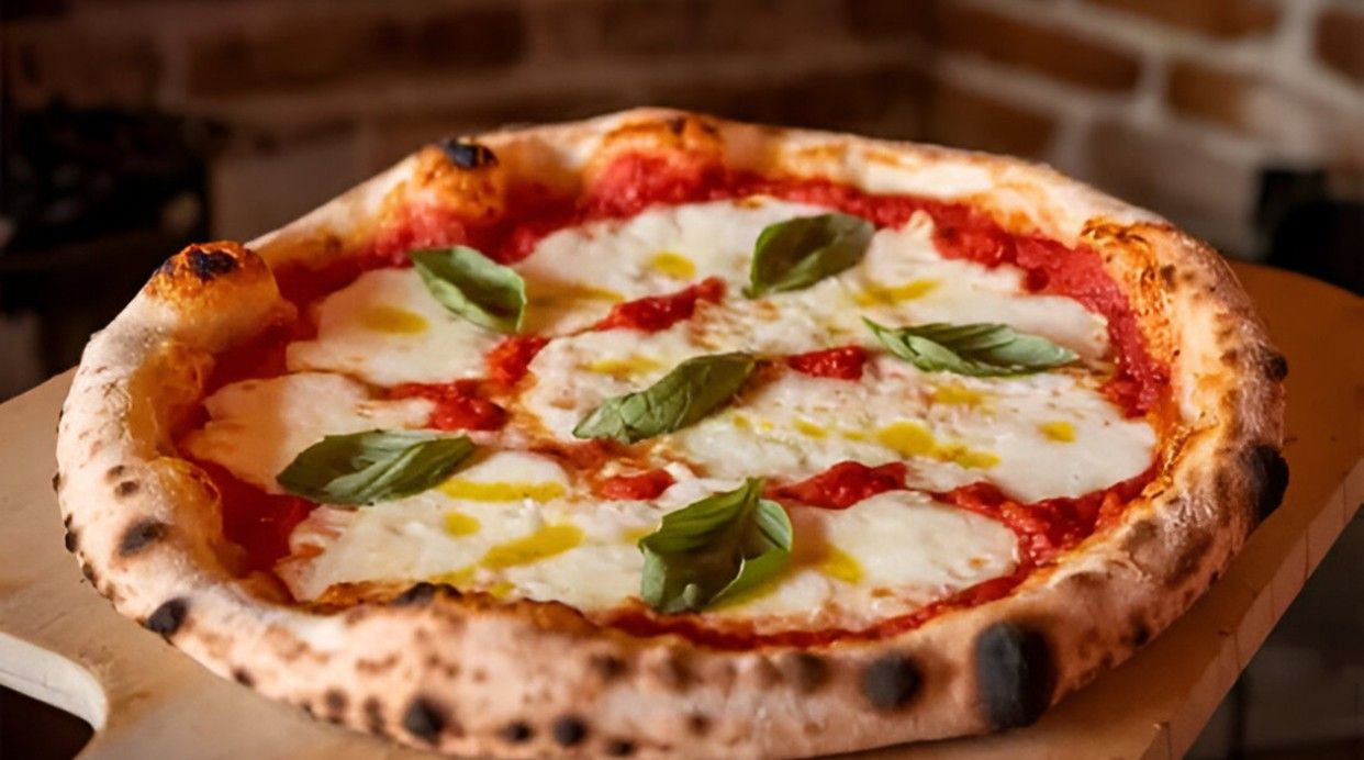 Salsa di pomodoro San Marzano, mozzarella fior di latte, ricotta fresca, pomodoro confit, scorza di limone IGP di Siracusa, basilico, olio EVO