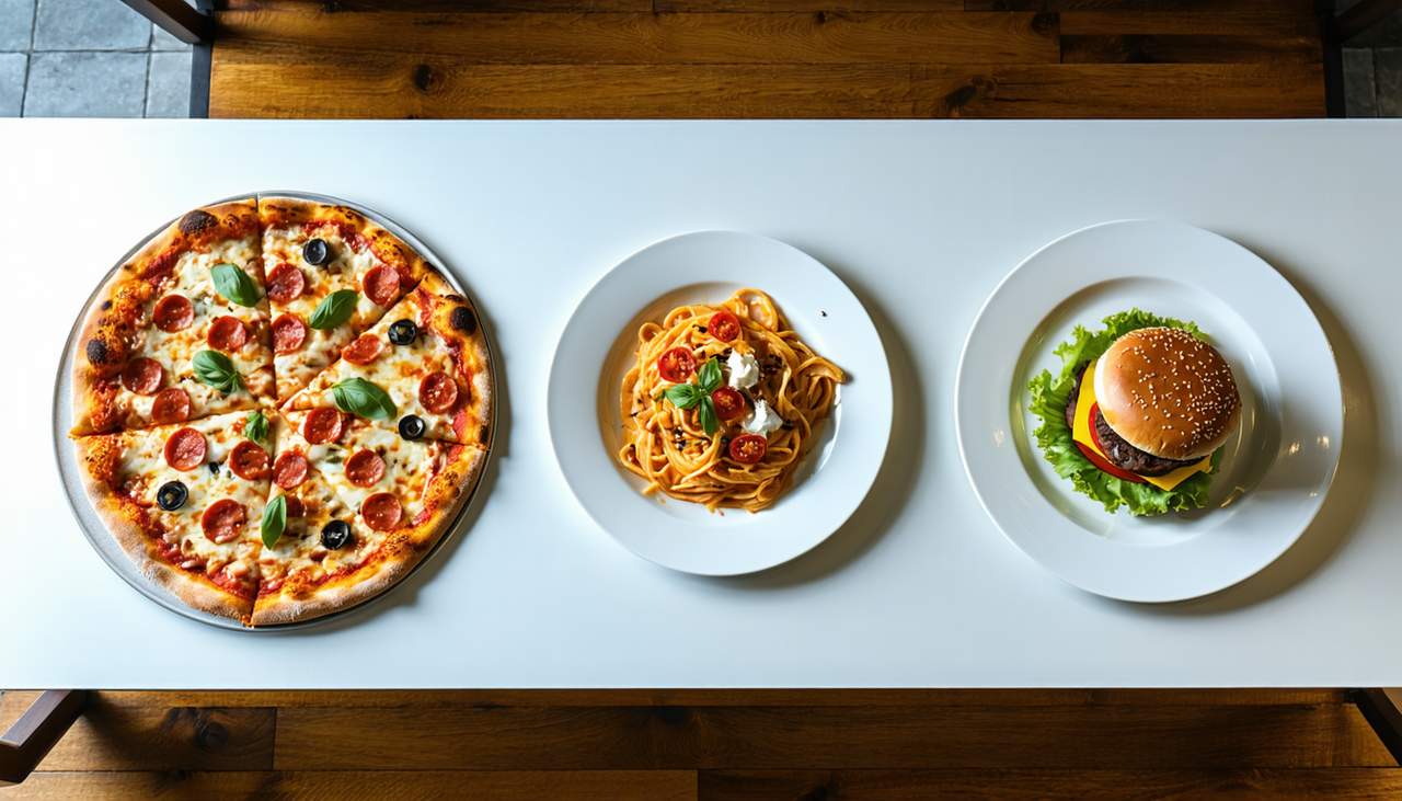 Sauce tomate ou blanche, mozzarella, édam, champignons, poivrons rouge et vert, olives, oignons, origan