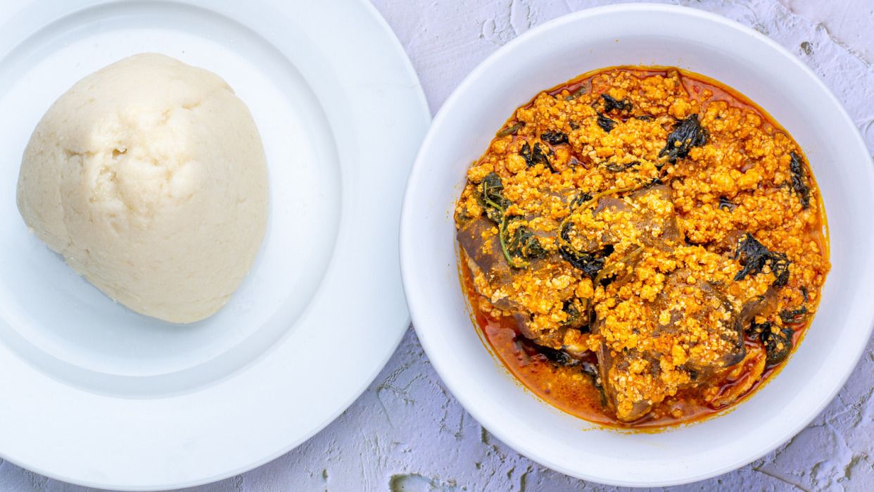Soup Made From Blended Melon Seeds Cooked with Thinly Sliced Pumpkin Leaves, Palm Oil and African Spices