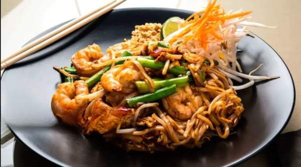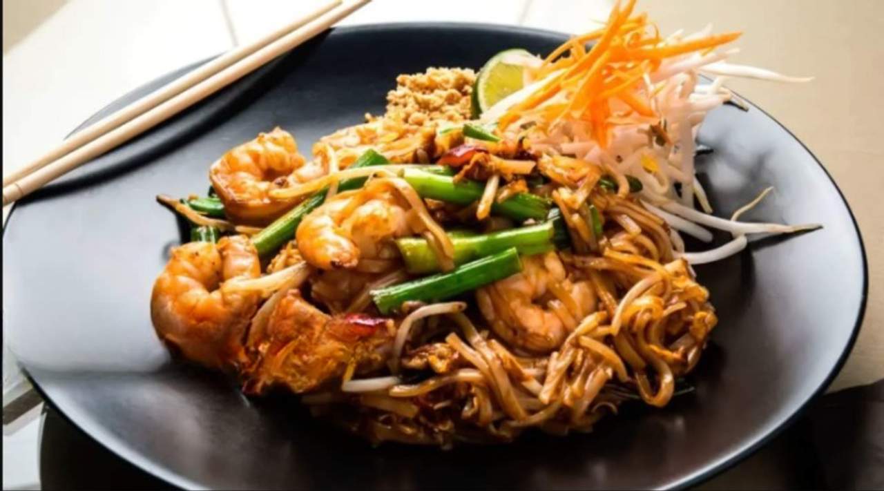 Klasyka tajskiej kuchni! Makaron ryżowy, Warzywa, Krewetki (7szt.), Orzechy i sekretny sos robiony na miejscu.