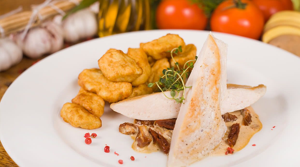 Zestaw Filet z kurczaka ze szpinakiem i frytkami