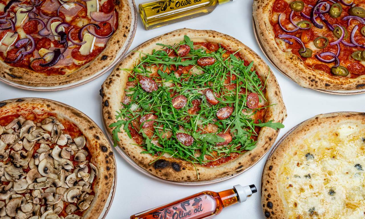 Gorgonzola piccante, mozzarella fior di latte, grana padano, cheddar, oliwa