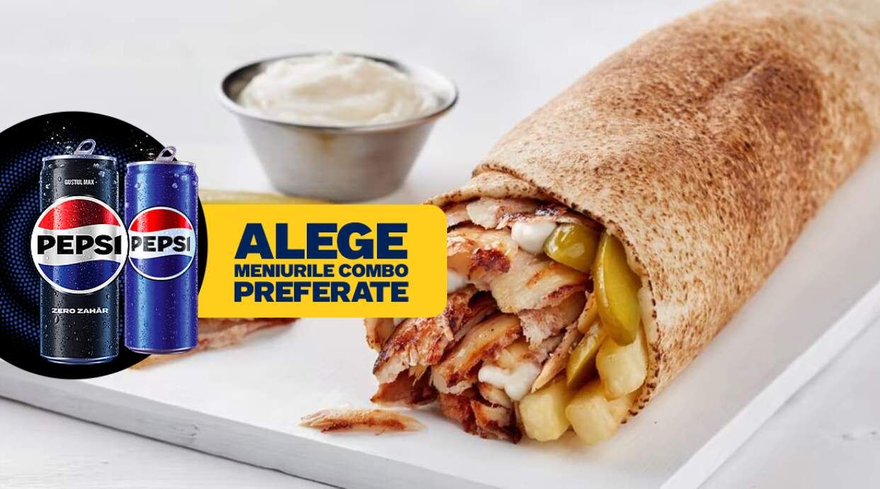 Tot ce ai nevoie într-un singur meniu! ✔ Sandwich pe vatră – alege cu ce îl vrei: șnițel, Goldi pane, piept de pui la grătar sau combinat (bifează opțiunea dorită) ✔ Tartă cu fructe – desert ușor și aromat ✔ 1 doză Pepsi Max – răcoritor și fără zahăr Fiecare sandwich vine standard cu: sos de maioneză și ketchup, cartofi prăjiți(produs congelat sau refrigerat) aurii, varză proaspăt tocată și castraveți murați, pentru un gust echilibrat și satisfăcător. Gust complet, porție generoasă și desert inclus!
