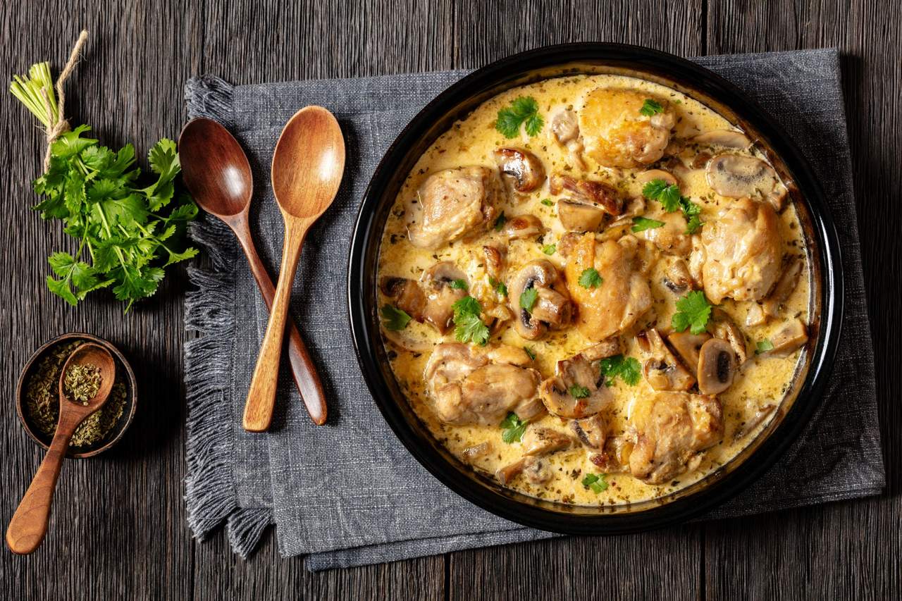 Șnițel de pui cu sos brun de ciuperci
