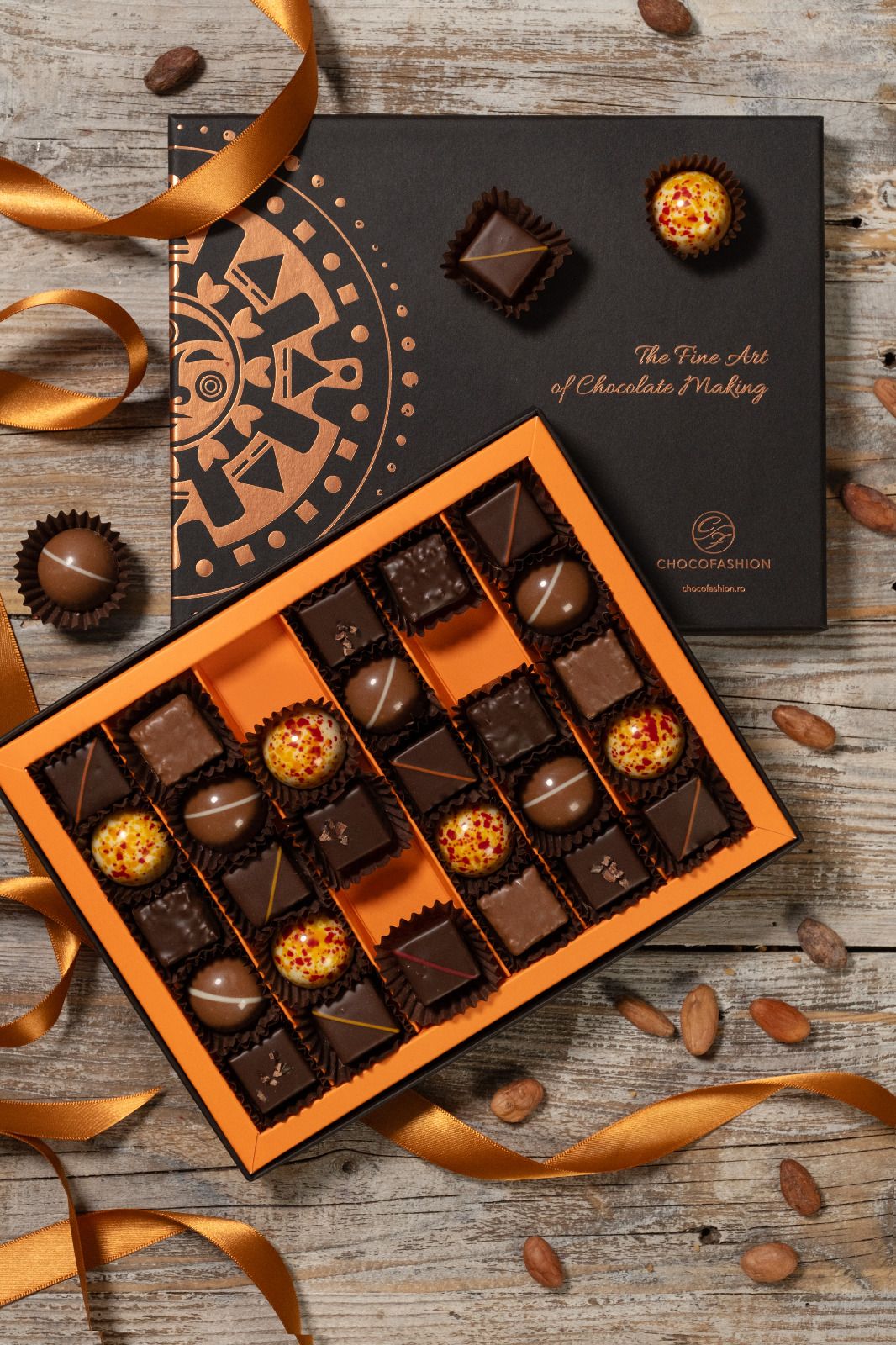 Cutie cu 16 praline artizanale colectia CHOCO COLORS