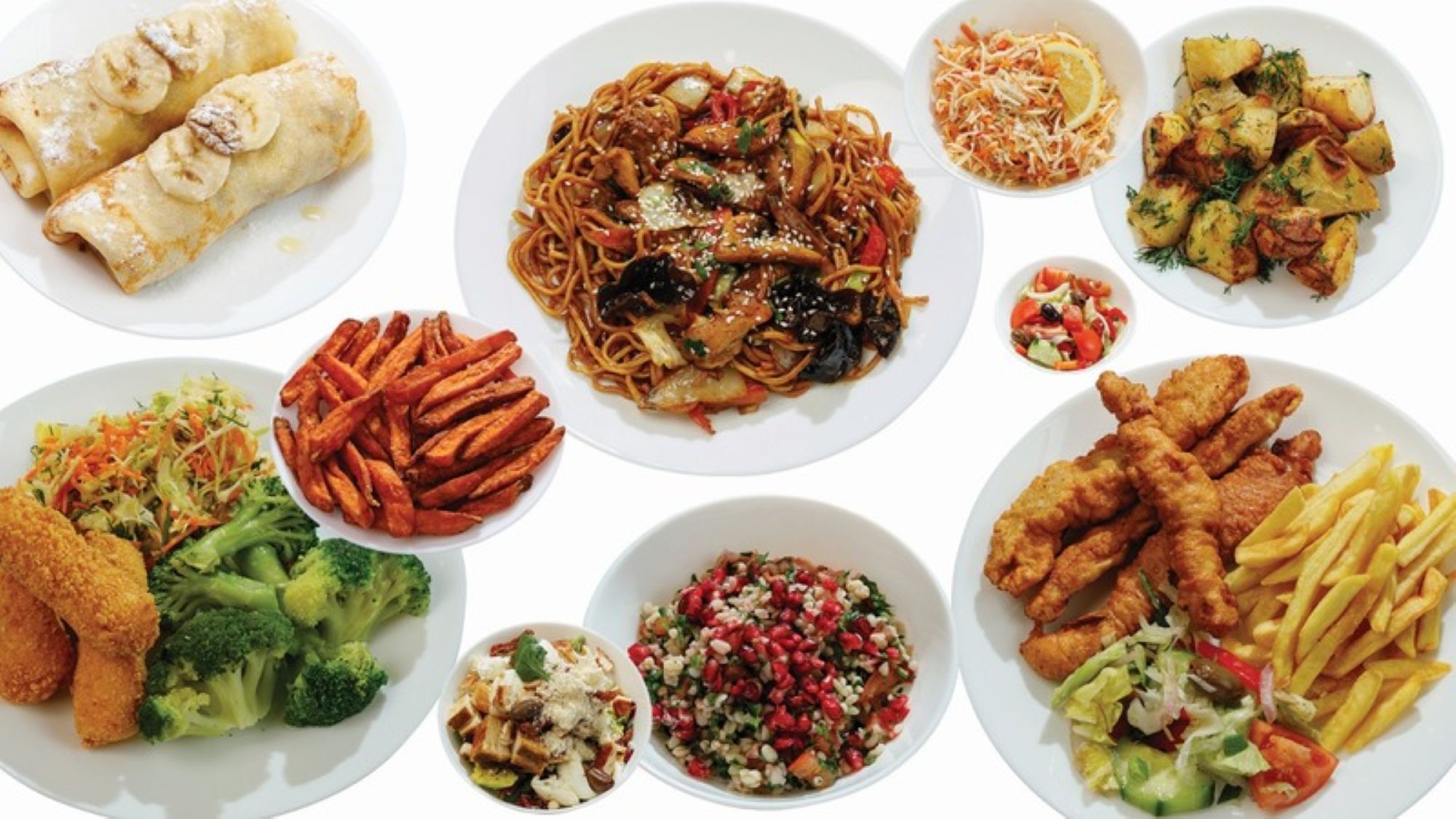 Piept de pui, pui crispy, pui shanghai, bulete de cașcaval, chifteluțe de dovlecei, pachețele de primăvară, calamar pane, mici, snițel de porc, ciuperci la grătar, cartofi prăjiți, mix de salate - 5kg