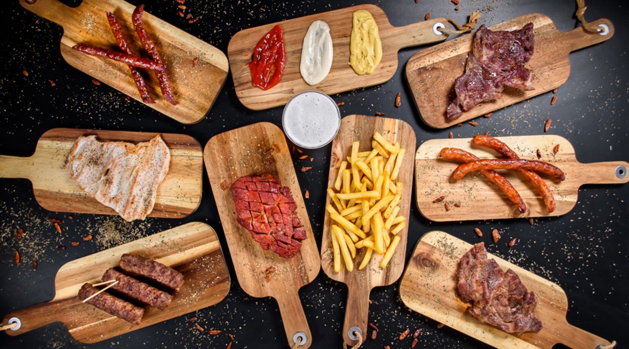 8 mici , 2 buc.Ceafă porc , 2 buc.piept păsărica , 4 cârnați meseriasi , 4 cârnați fițe , 4 cârnați pleșcoi , 2 porți cartofi , 2 porți cartofi cu topping de brânză . O sticla de vin cadou și artificie