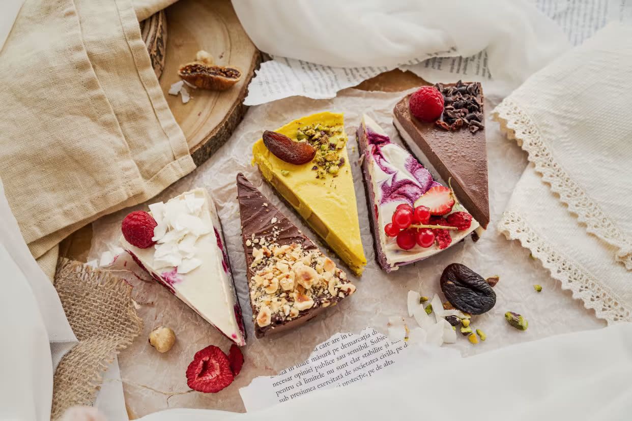 Tort raw vegan din felii diferite