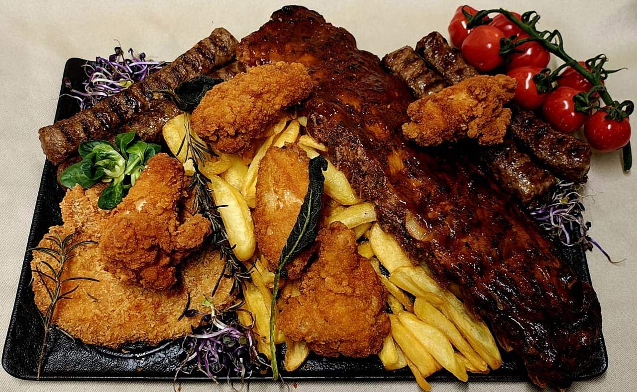 Mici din carne vita rețetă proprie,coaste de porc, ceafă de porc, aripioare de pui, cartofi prăjiți - 1.6kg