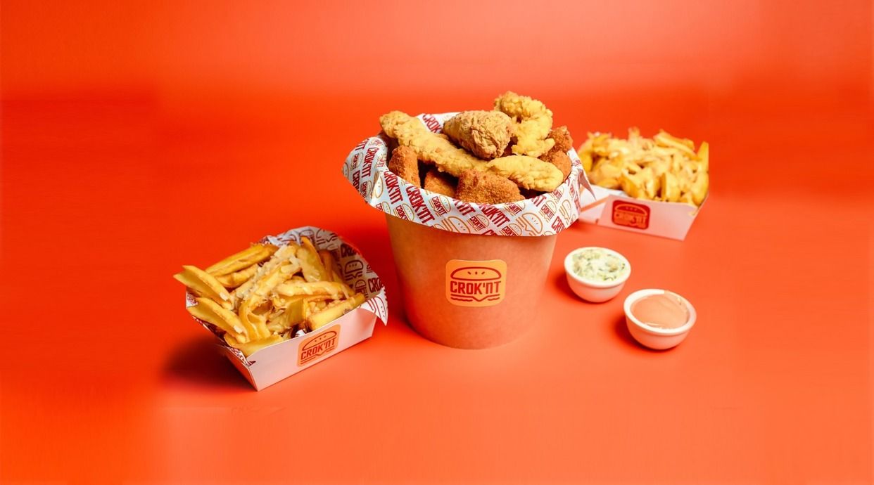 6 Crispy strips, 6 aripioare, 6 nuggets, 3 porții CroK'nt fries la alegere, 3 sosuri la alegere: maioneză cu usturoi / calipso / ketchup / samourai / remoulade – 840 g / 450 g / 100 g