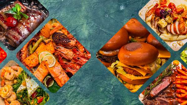 chifla brioche, carne burger angus, salata, sos express, cheddar, cartofi pai, sos la alegere 1800/800/400 g