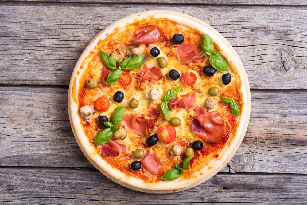 Pomodora, mozzarella, șuncă presată, măsline, ardei, ciuperci - 500g