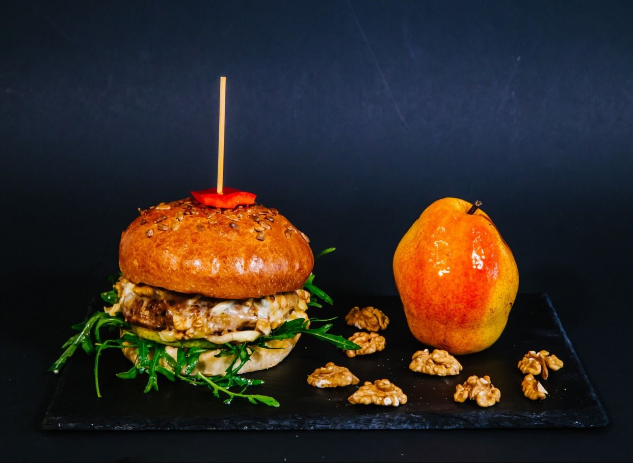 Pork Burger gourmet cu nuca si para