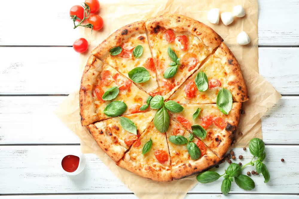 Sos roșii, mozzarella, șuncă, ciuperci, salam, ardei, măsline